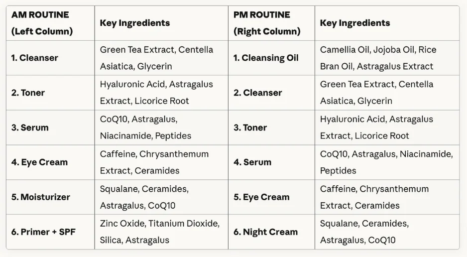 Absolutely. Every formula is dermatologist-tested and formulated without parabens, sulfates, alcohol, or synthetic fragrance. Our actives — including Astragalus, CoQ10, Ceramides, and Niacinamide — are clinically studied and selected for efficacy and skin compatibility. Suitable for all skin types, including sensitive skin.